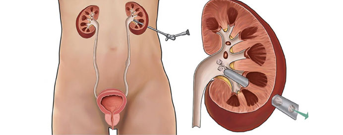 Percutaneous nephrolithotomy (PCNL) is a minimally invasive surgical procedure used to remove large or complex kidney stones that cannot be effectively treated with other non-invasive methods. During PCNL, a urologist makes a small incision in the patient's back and inserts a hollow tube called a nephroscope directly into the kidney, guided by imaging techniques such as fluoroscopy or ultrasound. Through this tube, specialized instruments are used to break up the kidney stone into smaller fragments using ultrasound or laser energy. These fragments are then extracted using a suction device or grasping instruments. PCNL is particularly effective for larger stones or those located in difficult-to-reach areas within the kidney or upper ureter. The procedure is performed under general anesthesia, and patients may require a short hospital stay for monitoring and post-operative care. Complications are generally low but can include bleeding, infection, or injury to surrounding structures. PCNL provides a high success rate in achieving complete stone clearance and offers patients a quicker recovery compared to traditional open surgery, making it a preferred option for many urologists in managing challenging kidney stone cases.