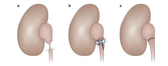 In reconstructive urology, pyeloplasty involves excising the obstructed segment of the ureter and reattaching the healthy ends to restore a wide and unobstructed passage for urine flow. This procedure can be performed through different surgical approaches, including traditional open surgery, laparoscopic surgery, or robotic-assisted surgery. Minimally invasive techniques such as laparoscopic or robotic-assisted pyeloplasty are favored due to their benefits, including smaller incisions, less postoperative pain, shorter hospital stays, and quicker recovery periods.